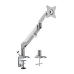 Monitori hoidja sobib enamikule 17 “-32” monitoridest, et täita mitmesuguseid kasutajate nõudmisi. Ideaalne väiksematele töökohtadele, eriti privaatsuspaneelidega töölaudadele. Lühem hoova disain, mis pakub paremat töö efektiivsust, suurendades laua ruumi ja mugavust. Täiustatud gaasivedru mehhanism tagab parema paindlikuse, sealhulgas +45°~-45° kallutamise, +90°~-90° pööramise ja +180°~-180 ° pöörlemise. Eemaldatav VESA-plaat võimaldab monitori kiiret paigaldamist, samal ajal kui kaablihaldur varjab juhtmeid. Hoidjad on kahte USB 3.0 portiga laadimiseks ja andmetele juurdepääsuks.